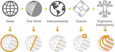 Para lograr esto, elegimos usar una paleta de colores complementarios. Esta combinación crea alto contraste y jerarquía visual, beneficiando también a las personas con visión reducida. Esto resultó en una paleta donde los tonos turquesa simbolizan el globo. La coexistencia de tonos fríos y cálidos representa la armonía de los opuestos en igualdad de condiciones. La introducción de un tono naranja refleja el factor humano, promoviendo la empatía y la vitalidad dentro de la paleta sin comprometer nuestros principios iniciales.